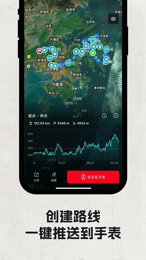 - 通过探索页面手动规划路线、收藏位置,让户外探索更有趣;
