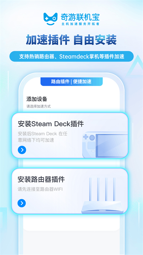 手机连接家庭WIFI,自动识别并安装路由器插件,一键开启全主机平台加速,告别主机游戏下载慢、联机不流畅的糟糕体验!