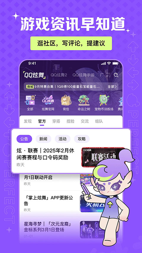 掌上炫舞App是腾讯游戏为《QQ炫舞》系列(包括端游及手游)玩家打造的官方综合社区软件。它不仅提供游戏资讯推送、活动查询、角色数据管理、签到及背包查看等实用工具,更核心的是构建了一个玩家交流空间:用户可以在此分享穿搭、交流技术、组队互动、实时与游戏好友聊天。掌上炫舞App移植了“云炫舞”玩法,让玩家能随时体验游戏内容。通过社区等级与创作者激励体系,鼓励玩家分享优质内容,形成活跃的炫舞生态圈,是炫舞玩家获取资讯、互动交流与游戏延伸体验的一站式移动社区。