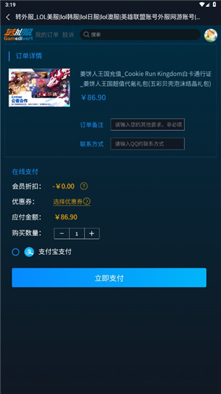 4、确认套餐进行支付,可以在订单中备注以及填写你的联系方式;