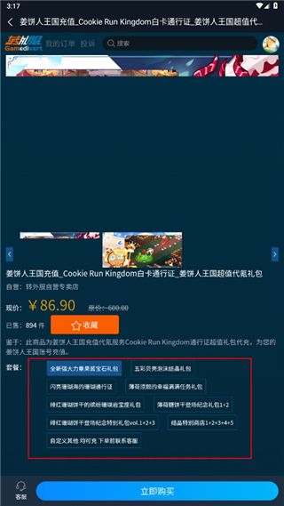 3、注册成功后登录用户在选需要购买的游戏商品;