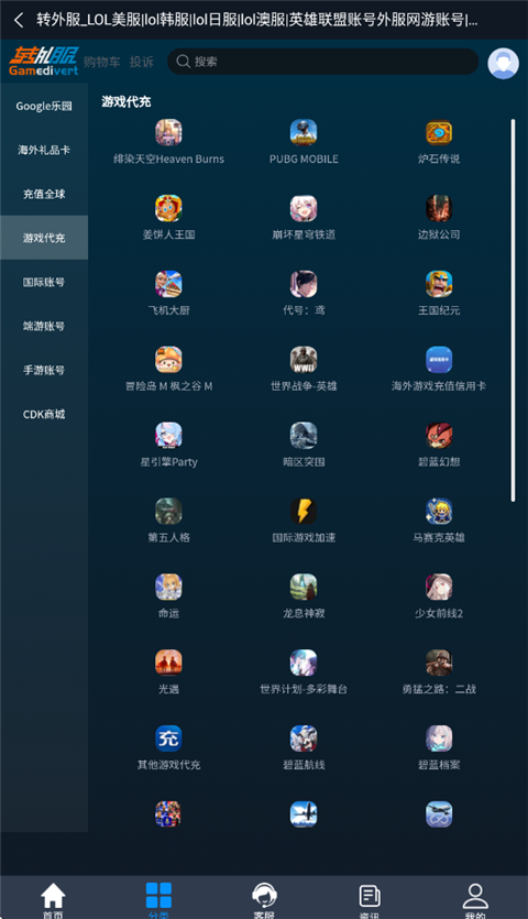 边狱公司、姜饼人王国、飞机大厨、代号:鸢、王国纪元、冒险岛 M、枫之谷 M、海外游戏充值信用卡、世界战争-英雄、勇猛之路:二战、其他游戏代充等等!