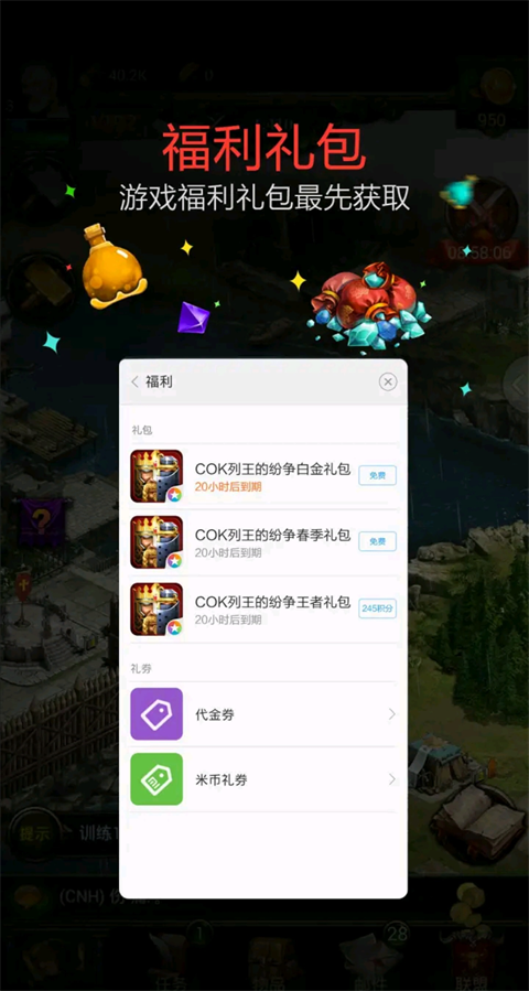 2、点击之后,小米游戏服务会出现福利活动、积分商城、礼包、优惠券等服务。