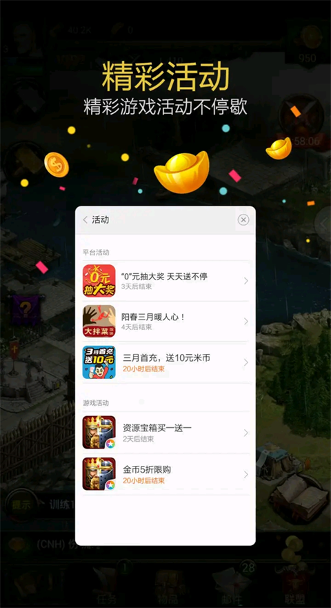 2、全新的游戏活动会持续在线更新,只需要简单参与就可以得到丰富的诸多奖励。