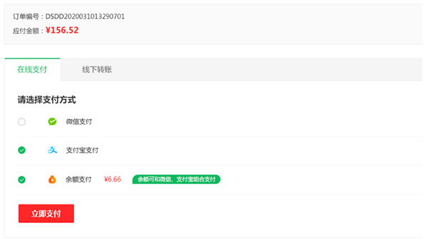 在核对订单购物信息无误后,可点击右下方的“立即结算”并提交订单进入支付页面,届时请选择支付方式完成支付