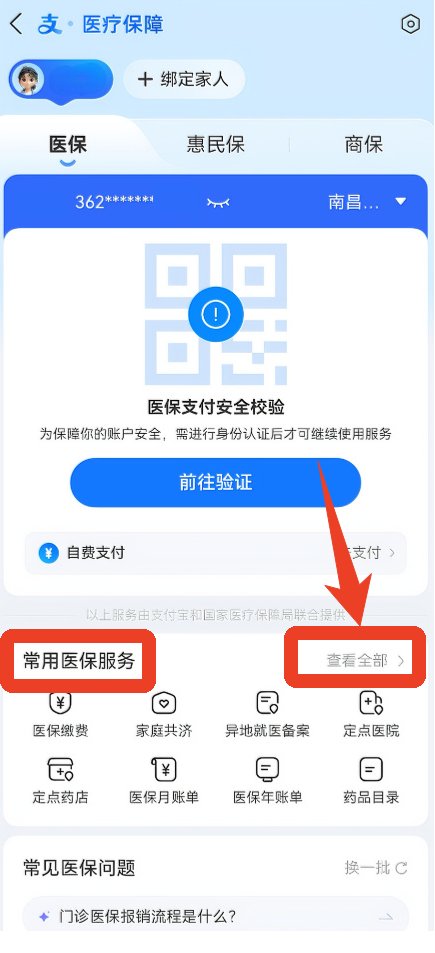 6、点击【常用医保服务】,右边的【查看全部】,你可以选择更多的服务。